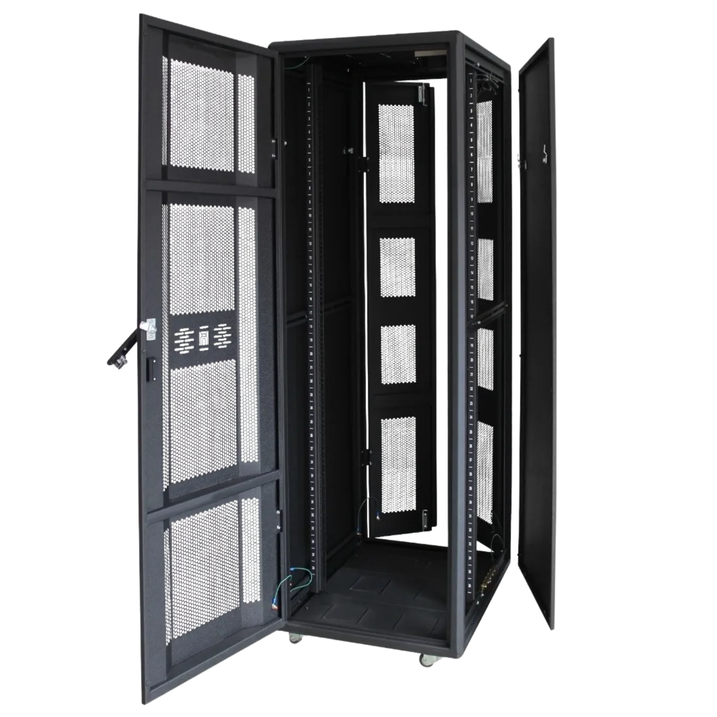 Gabinete metálico de alta resistencia diseñado para alojar servidores, switches y equipos de red en entornos empresariales, brindando seguridad, ventilación y organización profesional.